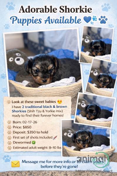 I have 2 traditional black & brown Shorkies (Shih Tzu & Yorkie mix) ready for their forever homes! ????